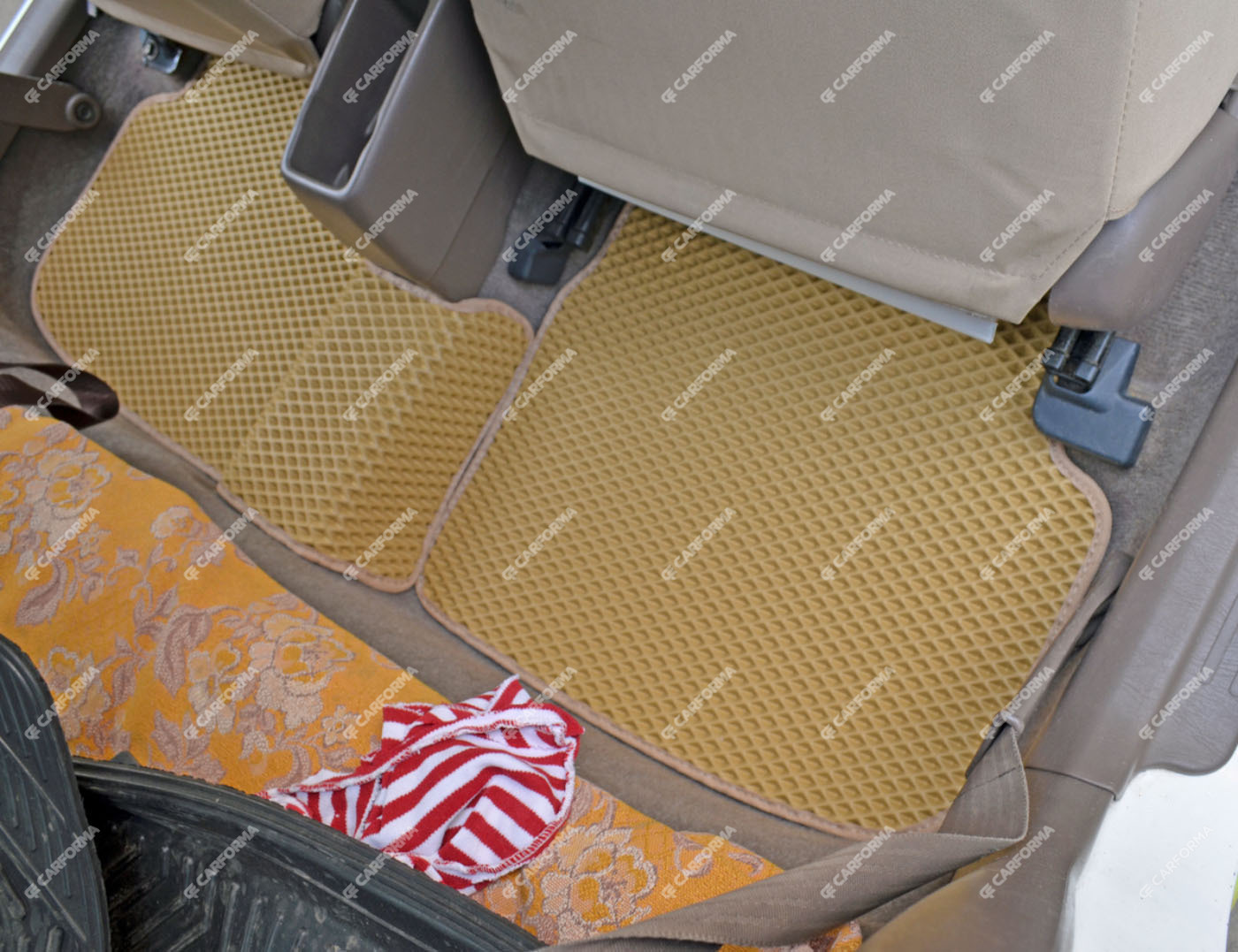 - Передние ковры полностью закрывают место под левую ногу водителя (зависит от авто)